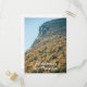 Uma fotografia de Cannon Mountain no outono. As folhas das árvores mudaram de verde para tons de laranja e amarelo. Estas cores cobriram a montanha, chegando perto do topo. O perfil da montanha são os restos da pedra granítica, onde costumava estar um rosto proeminente, como esperava e observava seu amor voltar a ele. Este dia de outono tem um céu claro e azul como fundo da cena. Em uma fonte branca é uma saudação, "Salutations du New Hampshire!" Imagem Copyright ©2024 Kimberly J Tilley. zazzle.com/store/developingnature