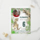 Cartaz de convite de orçamento para festa de aniversário da selva de dinossauro T-Rex com modelo de foto personalizado para a criança que ama dinossauros. Esses Tyrannosaurus rex itinerantes convidam fãs Dino para uma divertida e cheia de dinossauros na sexta festa de aniversário. Ilustrações únicas de dinossauros com fundo de abertura de cor d'água castanha e verde com foto personalizada, o número de anos e os detalhes da festa e você está preparado para uma festa de aniversário de 6 divertida e cheia de dinossauros. Todas as espécies de dinossauros são bem-vindas. Arte original da artista Catherine Sweetman