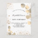Para uma elegante festa de aniversário 50th (ou qualquer idade). Um fundo branco na moda, decorado com ouro de eucalipto e poeira falsa dourada. Personalize e um nome e detalhes da festa. Letras pretas coloridas. Fundo: fundo branco, poeira brilhante, design postal. Dica: Se você não quiser que pareça um cartão postal, clique em personalizar, vá para o verso e remova o divisor e o carimbo de posto.