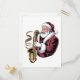 Cartão Postal De Convite Papai Noel Tocando Saxofone Músico de Natal Saxofo