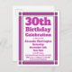 Enviar convites para uma celebração de aniversário de 30 anos com este Cartão-postal de Convite para aniversário de 30 anos Roxo Geométrico. Personalizado com suas informações pessoais e de terceiros.