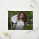 Comemore seu formando e convide os convidados com este postal de anúncio horizontal de graduação em uma foto que apresenta um formando moderno e moderno de um roteiro de caligrafia na frente e um retorno personalizável para os detalhes do seu partido.
