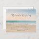 Um simples convite de casamento sobre a praia, que é casual, mas na moda. A praia quente e a água turquesa são o fundo perfeito para seus convites. Para personalizar, adicione seus primeiros nomes e detalhes do casamento. A parte traseira foi deixada vazio para você adicionar uma mensagem pessoal.