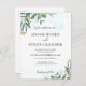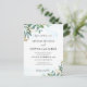 Eucalyptus Greenery Convite Postcard. Convide familiares e amigos para o seu dia especial com este convite para na moda decorado com eucalipto de aquarela e bagas de ouro num fundo azul claro do céu. Facilmente personalizável com seus detalhes. Porque nós criamos nosso próprio trabalho de arte você não encontrará essa imagem exata de outros designers. Original Watercolor © Michele Davies.