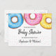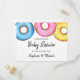 Cartão-postal de Convite para Chás de fraldas do Rosquinha Casal. Este convite de chá de fraldas bonito apresenta rosquinhas de aquarela cor-de-rosa, azul e amarela. Perfeito para um chá de fraldas neutro em termos de gênero. Personalize-o com seus detalhes. Porque nós criamos nosso próprio trabalho de arte você não encontrará essa imagem exata de outros designers. Original Watercolor © Michele Davies.