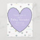 Um Coração Púrpura com as palavras, "Por favor, junte-se a nós para um chá de fraldas honrando..." num convite de Chá de fraldas do estilo postal do barato é simplesmente adorável, com pequenos corações coloridos e palavras doces e amáveis que trazem à mente os sentimentos especiais por trás do evento. Com acessórios correspondentes disponíveis, este design é a seleção perfeita para o seu chá de fraldas. Ligue para 203-302-0337 para obter assistência para montar o resto do seu pacote de correspondência de chás de fraldas, ou seja, decoração de festas, xícaras, pratos, guardanapos, plástico e muito mais, vendidos separadamente. HAMbWG