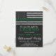 Convites à Reforma Militar da Linha Verde fina. Celebre anos de serviço dedicado, sua aposentadoria militar e convide amigos e familiares para o seu partido militar com este rustico Convite à aposentadoria de bandeira fina linha verde. DESIGN nos Estados Unidos da América em cores de bandeira militar, design branco preto vestido e verde. Veja nossa coleção para combinar presentes de aposentadoria militar, favoritos para festas militares de aposentadoria e suprimentos. COPYRIGHT © 2021 Judy Burrows, Black Dog Art - Todos Os Direitos Reservados. Cartão-postal de Convite de festas de Sinalizador de Linha Verde Fino para Reforma Militar