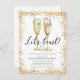 Este é um cartão-postal elegante e na moda com Convite de festas com um par de óculos de champanhe de água, uma borda de ouro e um chamado aos convidados para comemorar o início do novo ano com "Vamos brindar!" em uma letra moderna. Atualize facilmente os detalhes da parte na placa usando o modelo fornecido e lembre-se de incluir uma mensagem na parte traseira, bem como o endereço do remetente para sua conveniência (se desejar). Entre em contato com o designer para fazer perguntas ou problemas relacionados a este design ou a produtos correspondentes.