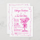 Whimsical e feminina, este convite de aniversário surpresa para festas do tema espresso martini apresenta um grande martini de rabisco rosa e quadro. Todo o texto é editável.