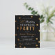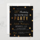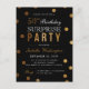 Convite de aniversário surpreendente clássico com faux gold glitter confetti em preto com um layout de tipografia moderno.