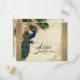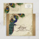 Cartão Postal De Convite Pavão e Penas Dourado Antigo Estampa Damask Ondula
