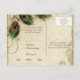 SELEÇÃO DE PAPEL: Os cartões-postais são impressos em um papel cartão muito bom e pesado que é brilhante na frente e fosco no verso. PALETA DE CORES: dourado metálico, bege, azul real, verde e ferrugem. DESIGN: Cartão de Resposta RSVP correspondente. Há uma fonte de caligrafia escrita à mão RSVP na frente deste design. Esta coleção de casamento inspirada em antiguidades vintage tem um conjunto completo de produtos e pode ser criada em várias combinações de cores. Se você quiser que combine com o seu casamento, nos avise por e-mail e ficaremos felizes em ajudá-lo. Este design consiste em um majestoso pavão em um elemento de arte vintage de galho de árvore, sobreposto a três penas de pavão e sobre uma gravação de anjo, espirais, escrita à mão antiga, renda pintada à mão sobre pergaminho e um