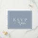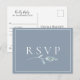 Cartão postal de RSVP de casamento com flor de prado em aquarela azul poeirento e pedido de música. Personalize o texto, customize o estilo da fonte, cor e tamanho. Projetado para combinar com nossa Coleção Botânica Azul Poeirento.
