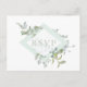 Tons de verde sage em aquarela, cartão de confirmação de presença com pedido de música para o casamento. A parte frontal do cartão apresenta uma moldura em diamante adornada com motivos botânicos em sage empoeirado. Criado para combinar com a nossa coleção de elementos botânicos em sage.