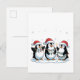 Cartão Postal De Convite Pinguim Fofo Vestindo Chapéu de Papai Noel Amante
