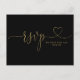 Um guião de coração dourado elegante numa placa RSVP preta. O inverso apresenta os seus detalhes e uma solicitação divertida de música de convidado. Projetado por Thisnotme©