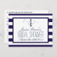 Essas placas de receitas de chá de panela de farol náutico com faixa branca e marinho farão o acessório perfeito para qualquer noiva! O design apresenta um adorável fundo marinho azul e branco listrado com um farol náutico e gaivotas voadoras. Estes cartões de receita podem ser personalizados para sua ocasião especial e tornariam o item perfeito para qualquer casamento de praia, chá de panela, festa de noivado, festa de aniversário e muito, muito mais.