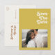 Este convite de cartão postal para salvar a data do casamento com foto dourada de praia retrô é perfeito para o seu casamento simples, vintage, colorido, tropical, boêmio de verão. Sua fonte única boêmia de meados do século dá a este design uma vibe clássica minimalista groovy hippie. Suponha que você esteja procurando por um design que apresente cores brilhantes e rústicas do oceano costeiro para o seu casamento criativo de destino na praia dos anos 70. Nesse caso, este produto, e sua coleção de casamento coordenada, são o que você está procurando. Sinta-se à vontade para alterar a cor e adicionar sua própria arte, gráficos ou fotos. Se tiver alguma dúvida sobre o design deste produto, por favor sinta-se à vontade para entrar em contato conosco!