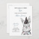 Cartão Postal De Convite Preto e Branco Um coelho está virando dois anos