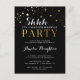 Cartão Postal De Convite Preto e Dourado Shhh... Parte Surpresa