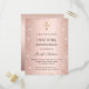 Um fundo gradiente rosa dourado. Decorado com rosa dourado, poeira brilhante falsa rosa e uma cruz. Personalize e adicione um nome e detalhes. O nome é escrito com uma fonte manuscrita estilo lettering