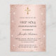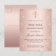 Cartão Postal De Convite Primeira comunhão rosa dourado brilho menina
