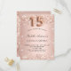 Cartão Postal De Convite Quinceanera rosa dourado esfola elegante