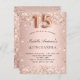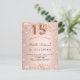 Para uma elegante Quinceañera, 15 festa de aniversário. Um fundo de gradiente rosa ouro. Decorado com rosa dourado falso poeira brilhante. Personalize e adicione um nome e detalhes da parte. O nome é escrito com um script de estilo manuscrito. O número 15 é escrito com uma fonte no estilo do balão. Dica: Se você não quiser que pareça um cartão postal, clique em personalizar, vá para o verso e remova o divisor e o carimbo de posto.