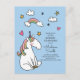 Cartão Postal De Convite Rainbow Unicorn Stars Heart Invitation
