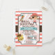 Ahoy, Matey! Encantado, fofo e enigmático tema crianças, convite de festa de aniversário de menina em um padrão de riscas brancas e rosa-coral. Possui uma pirata com botas, manchas oculares, rabos de porco e bandana bolinhas com papagaio pirata, pássaro e tórax do tesouro. Segundo, segundo, aniversário pode ser personalizado para o primeiro, 1rua ou outros aniversários para bebês, crianças, bebês, bebês, etc. As cores incluem cor-de-coral rosa, marrom, azul-lacrimogêneo, amarelo e branco.