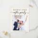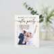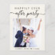 Elemento de creme leve ou anúncio privado de casamento e convite postal de recepção. A frente mostra sua foto, "Feliz Festa Depois" em uma simples tipografia moderna e uma escritura elegante com pestanas e seus nomes e data de casamento juntos com um coração. No verso, personalize seu anúncio e convite e adicione seus nomes em um script semelhante a assinatura.