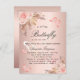 Para um chá de fraldas moderno estilo boho. Um fundo de gradiente rosa ouro. Decorados com ouro rosa e flores, rosas, erva-pampas e borboletas cor-de-rosa. Personalize e adicione um nome e detalhes da parte.