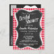 Cartão Postal De Convite Retro Scarlet Red Gingham; Olhar para Quadros Alca