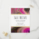 Casamento salve o cartão postal com um desenho abstrato e de aparência ranhosa. As cores rosa e preta misturam-se e unem-se num movimento giratório. Espelhos de dourada falsa entre as camadas. Um quadro retangular com folha de ouro falsa colocada sobre cima com seu dentro de texto personalizado.