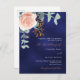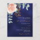 Cartão Postal De Convite Rosa ouro verde marinho casamento azul