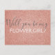 Rosa Rosa Rosa Rosa Dourada Faux Glitter e Elegante Sparkle Você será minha garota florista? Cartão Postal.