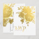 Cartão-postal Rosas Douradas em Folha de Flâmula Elegante Moderno Casamento RSVP. Itens correspondentes disponíveis.