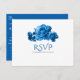Cartão Postal De Convite Rosas em Aquarela Azul RSVP de Casamento Elegante