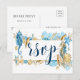 Cartão Postal De Convite RSVP Casamento de Verão Azul Dourado Sob o Mar