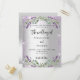 Um convite de casamento moderno e na moda. Um fundo de aparência pura prateada com brilho violeta, faíscas, flores de lavanda, flores e verde de eucalipto. Personalize e adicione seus nomes e detalhes. Voltar: adicione o URL do seu local de casamento para o código QR e um texto.
