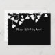Cartão Postal De Convite RSVP de Coração Branco Preto