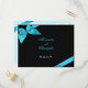 Fita turquesa sobre fundo preto. Placa RSVP totalmente personalizável para uso em casamentos, festas, chá de panela, noivado e quaisquer outras ocasiões especiais. O endereço pode ser escrito à mão, rotulado ou adicionado aqui usando o botão "Personalizar". Use também o botão "Personalizar" para alterar as cores ou fontes do texto. Design original de Ruxique. Procure itens correspondentes desta coleção.