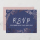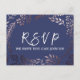 Este cartão postal de RSVP de rosa e marinho elegante é perfeito para um casamento clássico. O design apresenta uma impressionante moldura rosa-pincelada num fundo azul escuro e é emparelhado com uma fonte encantadora e cursiva. Crie sua lista de convidados de casamento e sua lista de músicas de dança de uma só vez! Este cartão de resposta do casamento convenientemente pergunta aos hóspedes se eles serão capazes de ir ao seu casamento, e também que música os fará dançar. Nota: Este design não apresenta folha de ouro rosa real. É um gráfico de alta qualidade feito para se parecer com ouro rosa brilhante.