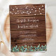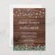 Cartão Postal De Convite Rustic Wood String Lights Greenery Código QR Casam