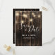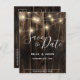 Cartão Postal De Convite Rustic Wood String Luz Casamento Salvar A Data