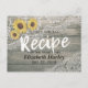 Modelos de Placa de Receita do chá de panela - Script Chic com Girassóis e Lace Elegante da Madeira Rústica. Um Design Perfeito Para O Seu Grande Dia! Todo Estilo De Texto, Cores, Tamanhos Podem Ser Modificados Para Ajustado Das Suas Necessidades.