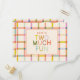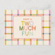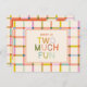 Celebre seu pequeno e girando dois com este divertido convite postal de aniversário "Duas Muito Divertidas", apresentando um padrão de xadrez pastel suave em rosa, pêssego, menta e amarelo. A tipografia alegre e o layout limpo o tornam perfeito para uma festa de criança cheia de diversão. Personalize facilmente com o nome do seu filho, a data da festa, o local e os detalhes de RSVP para uma manutenção verdadeiramente exclusiva. Ideal para comemorações de primavera ou verão, este encantador convite dá o tom para um dia brilhante e alegre.