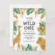 Cartão Postal De Convite Selvagem Um Safari da Selva Aniversário de 1 Ano D