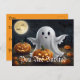 Cartões de saudação personalizados bem projetados, perfeitos para aniversários, feriados, ocasiões especiais, ou enviando uma mensagem sincera para os entes queridos. Traga um fantasma amigável para a decoração de Halloween com este design delicioso, apresentando um fantasma sorridente entre os picos-de-lanternas debaixo de uma lua de cheio. Perfeito para decorações de festas de Halloween, este design adiciona um toque lúdico a qualquer comemoração de outono. Crie seus produtos exclusivos do Dia das Bruxas com este design no Zazzle hoje e torne sua temporada de Halloween inesquecível! #HalloweenDecor #FriendlyGhost #PumpkinPatch #HalloweenFun #SpookyDelight