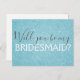 Teal Aqua Blue Girly Faux Glitter e Sparkle Elegant Você será minha madrinha? Cartão Postal.